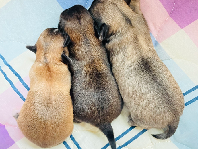 Bloom did a fantastic job delivering her first litter and she is being an excellent mother. All three boys are thriving! Christy and I...